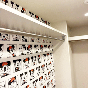 ウォークインクローゼットを開けた瞬間にお気に入りのキャラクター柄が目に入る仕様にしました。